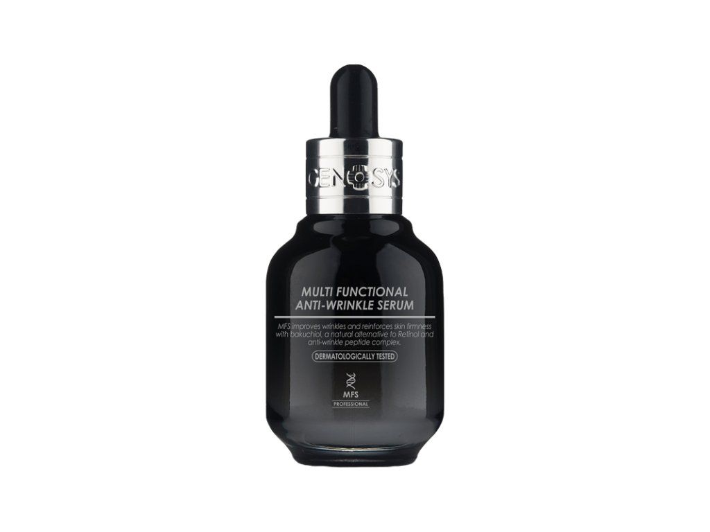 Genosys Multi Functional Anti-Wrinkle Serum peptidové sérum proti vráskám má multifunkční účinek proti stárnutí: redukuje hloubku vrásek, zvyšuje elasticitu a hustotu pokožky, stimuluje tvorbu kolagenových vláken.