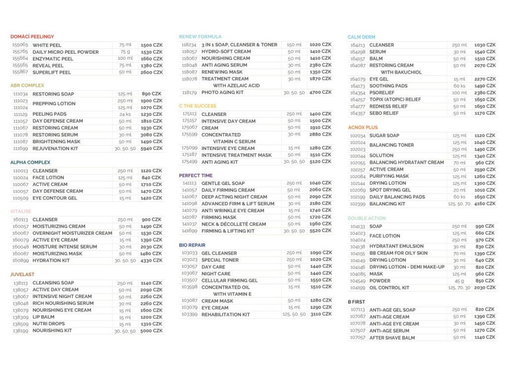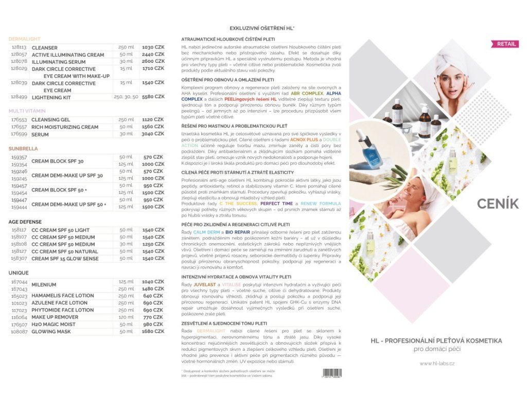 Obsah: B2C ceník produktů + marketingový popis procedur HL na zadní straně